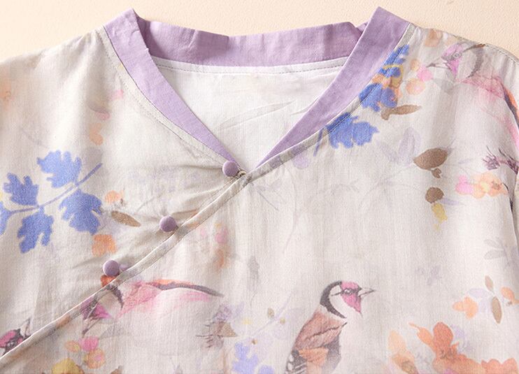 チャイナ服 ワンピース 春夏 花柄 落ち着いた風合い 素朴 五分袖 薄手 zl348