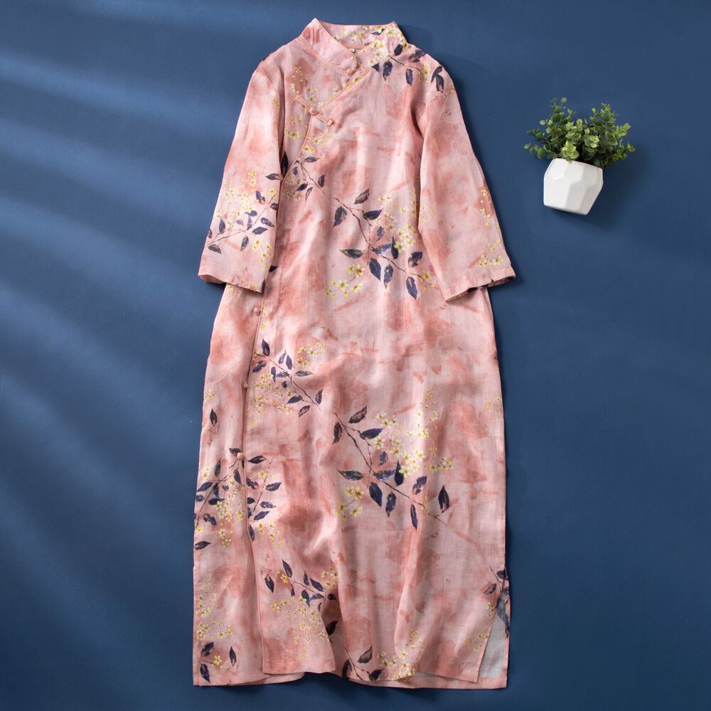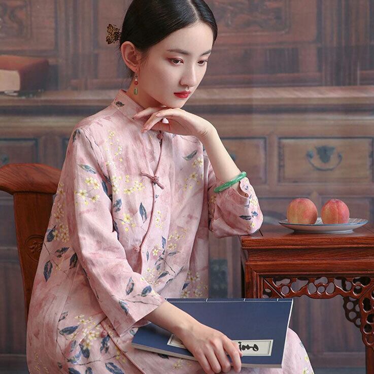 チャイナ服 ワンピース 春夏 ゆったり チャイナワンピ 素朴な花柄 zl352
