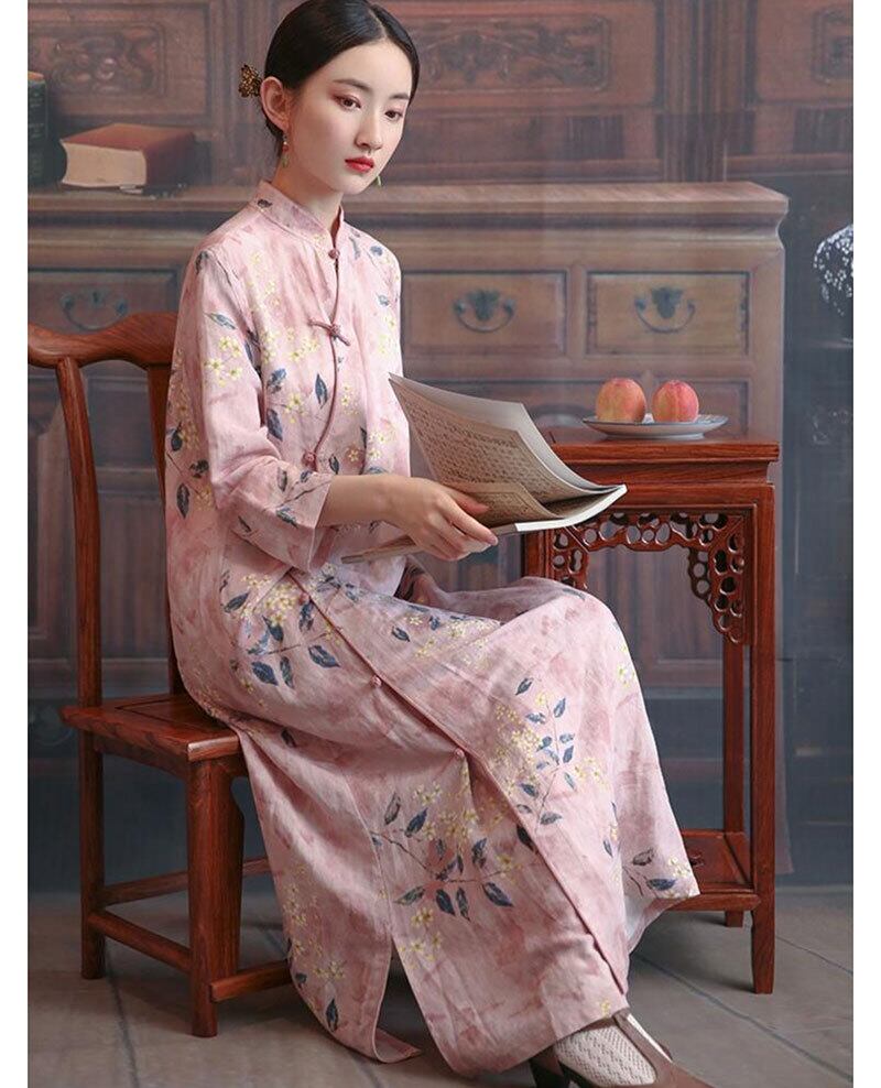 トップスも普段着も揃うチャイナ服専門店chaiです。こちらはチャイナ服 ワンピース 春夏 ゆったり チャイナワンピ 素朴な花柄 zl352の商品ページです。落ち着いた風合いのチャイナロングワンピースで、素朴な雰囲気が普段着にちょうどよいアイテムです。