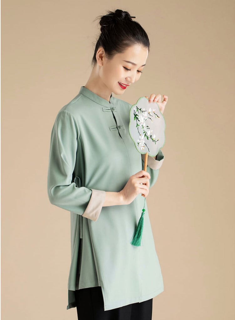 トップスも普段着も揃うチャイナ服専門店chaiです。こちらはチャイナ服 トップス 8分袖 男女兼用 ウェイター ホール 飲食店 ユニフォームにぴったり zt444の商品ページです。無地でシンプルなチャイナトップスで、飲食店のユニフォームなどにぴったりのアイテムです。