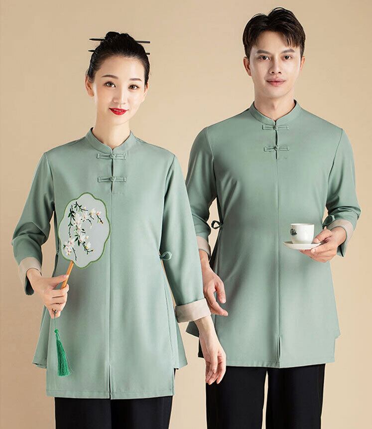 チャイナ服 トップス 8分袖 男女兼用 ウェイター ホール 飲食店 ユニフォームにぴったり zt444