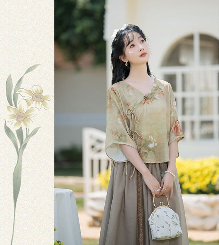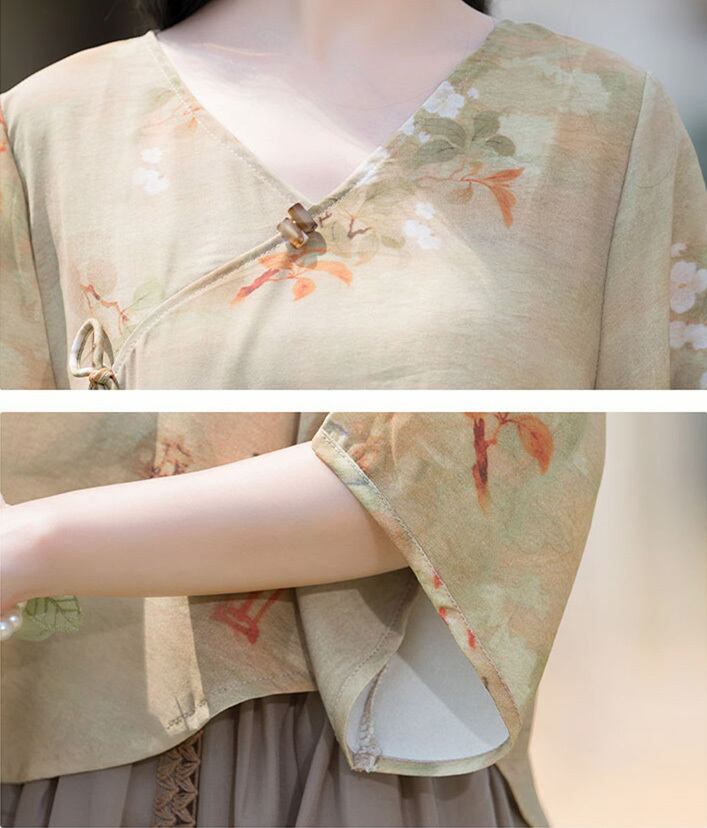 チャイナ服 トップス 春夏 素朴 落ち着いた風合い Vネック 五分袖 zh412
