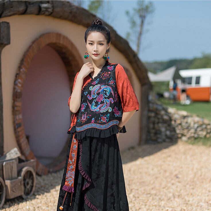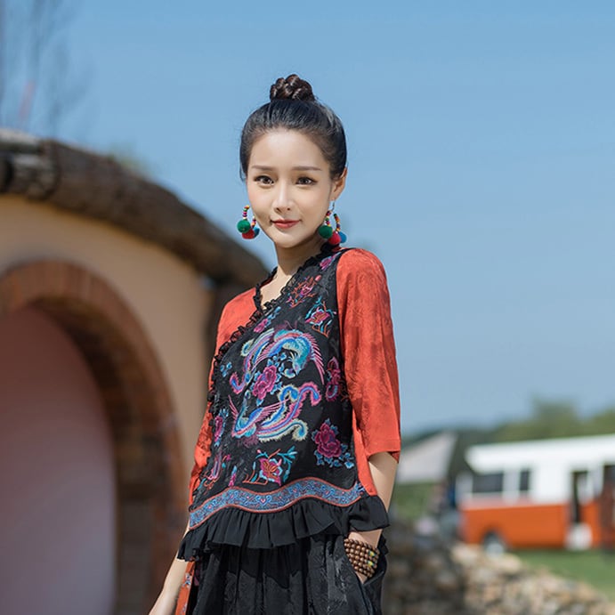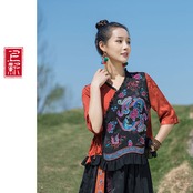 チャイナ服 トップス 五分袖 民族衣装風 凝った刺繍 チャイナシャツ zh418