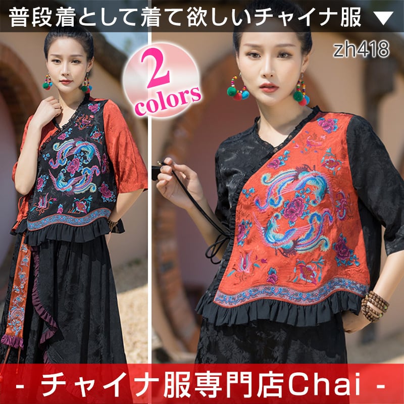 トップスも普段着も揃うチャイナ服専門店chaiです。こちらはチャイナ服 トップス 七分袖 民族衣装風 凝った刺繍 チャイナシャツ zh418の商品ページです。造りの凝った刺繍が素敵な民族衣装風トップスで、チャイナファッションにぴったりのアイテムです。