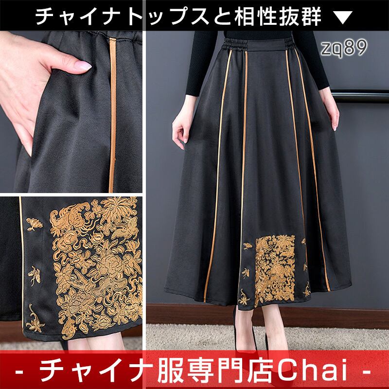 チャイナ服 スカート Aライン 上品な風合い 装飾ロングスカート 普段着チャイナ zq89