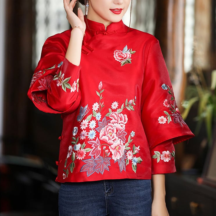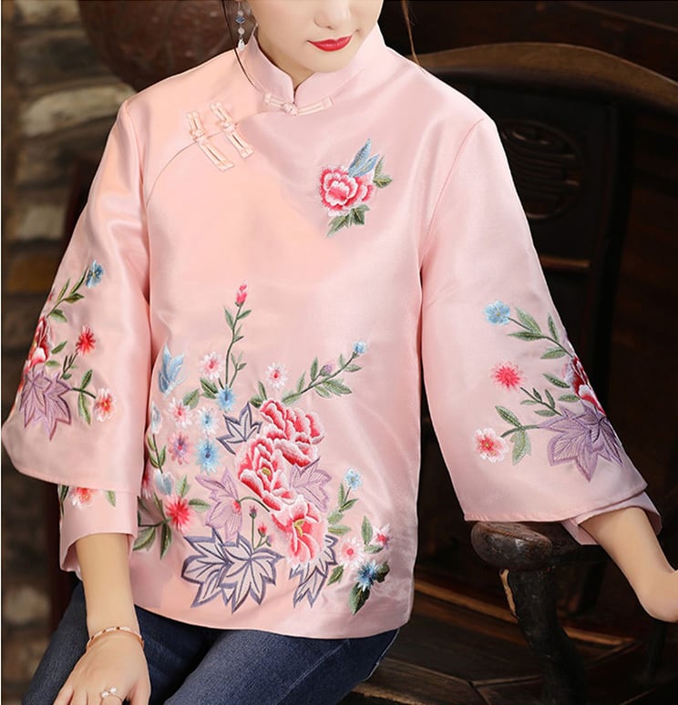トップスも普段着も揃うチャイナ服専門店chaiです。こちらはチャイナ服 トップス 二重袖 華やかな風合い 刺繍 zt451の商品ページです。二重袖の可愛い華やかな風合いのトップスで、チャイナファッションにぴったりのアイテムです。