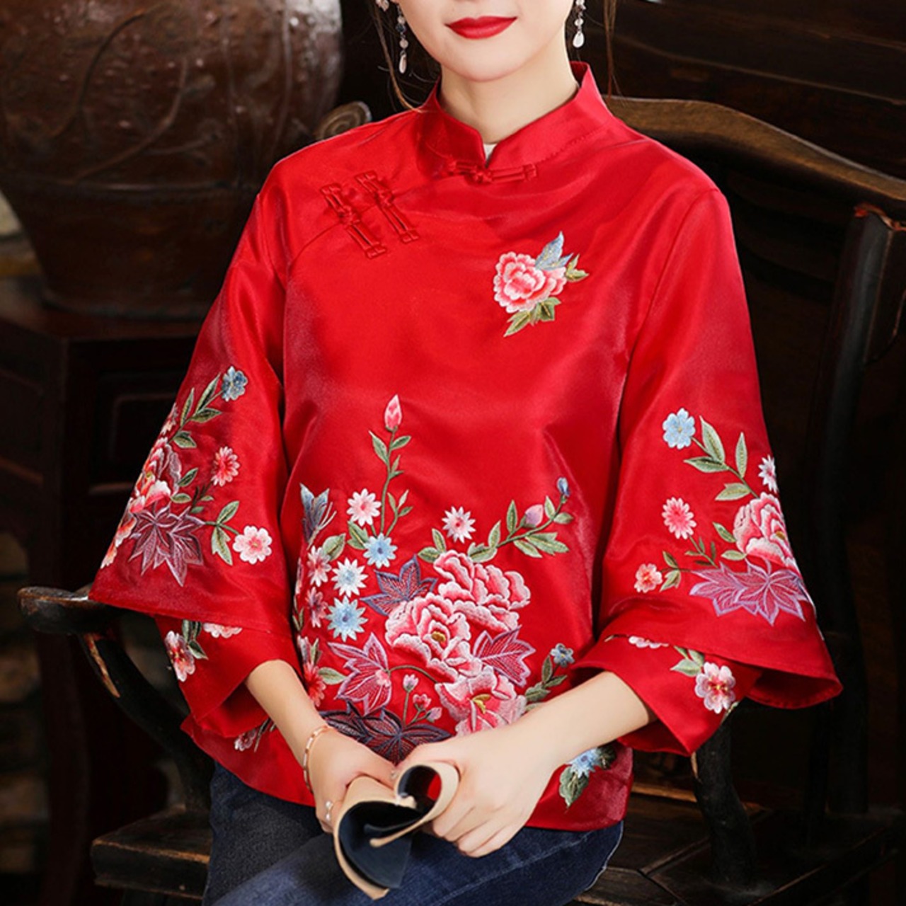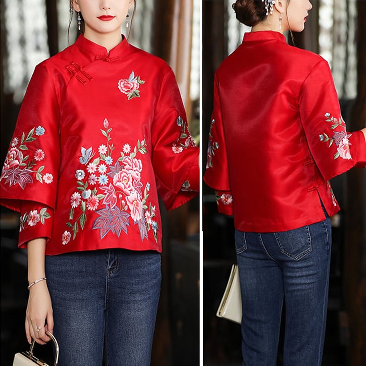 チャイナ服 トップス 二重袖 華やかな風合い 刺繍 zt451