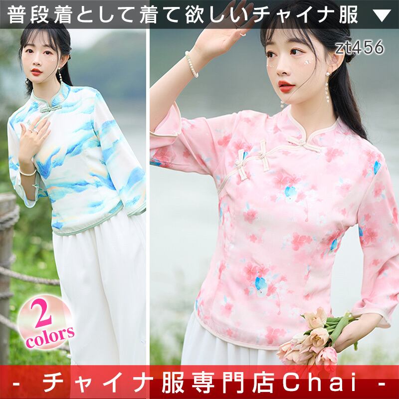 トップスも普段着も揃うチャイナ服専門店chaiです。こちらはチャイナ服 トップス 春夏 爽やかな風合い 花柄 七分袖 zt456の商品ページです。爽やかな風合いのチャイナトップスで、春夏の普段着にぴったりのアイテムです。