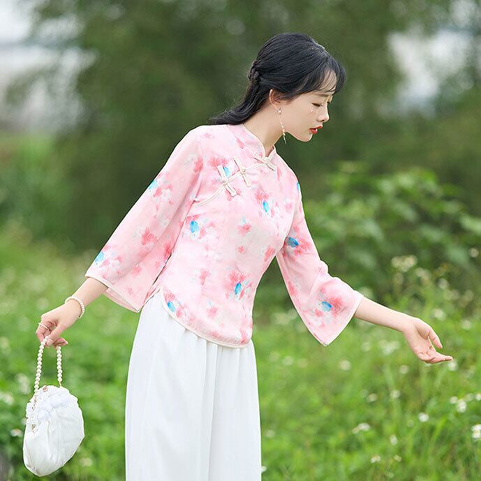 チャイナ服 トップス 春夏 爽やかな風合い 花柄 七分袖 zt456