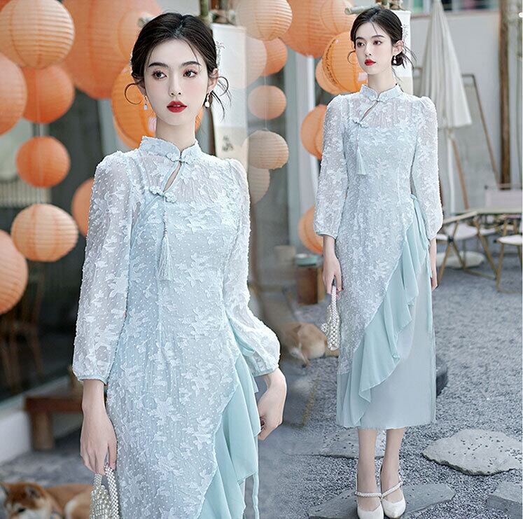 チャイナドレス ワンピース シフォン フェミニン 普段着 zl359