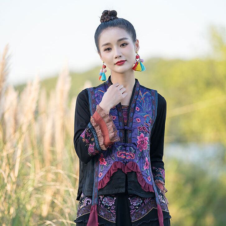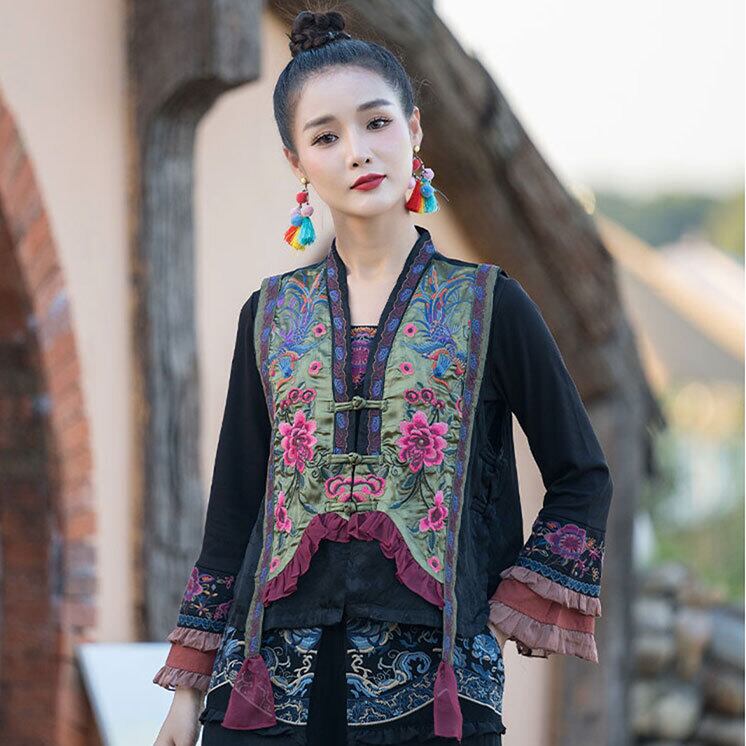 チャイナ服 トップス チャイナベスト 凝った刺繍 華やか風合い zv60