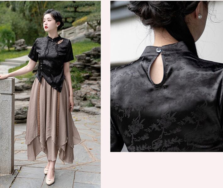 チャイナ服 トップス 半袖 アシンメトリー 上品な風合い zh422