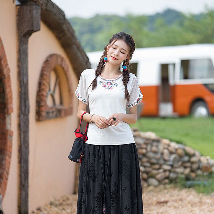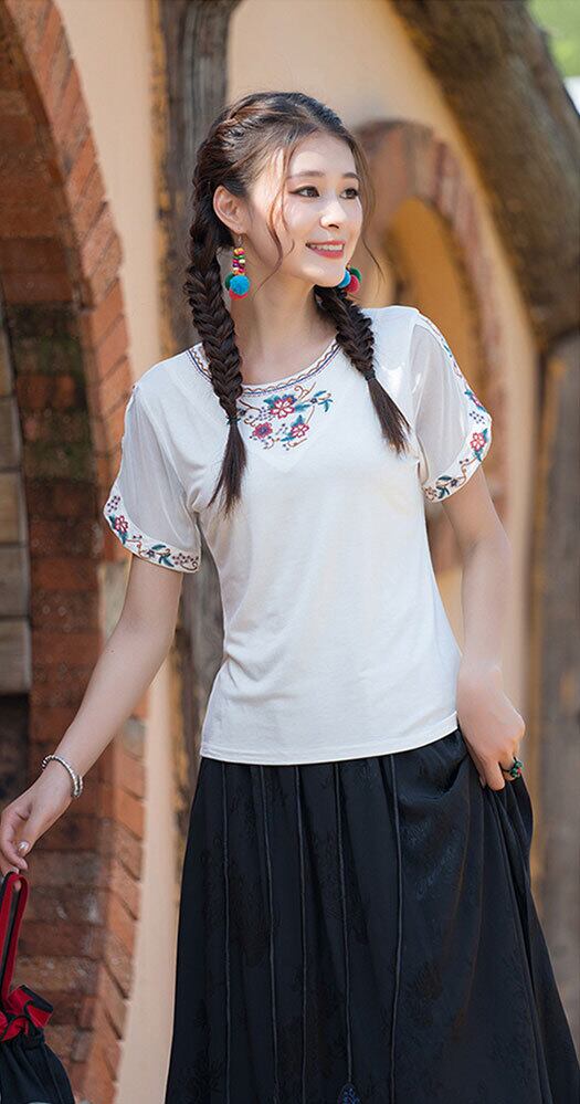 トップスも普段着も揃うチャイナ服専門店chaiです。こちらはチャイナ服 トップス 半袖 刺繍 チャイナT zh425の商品ページです。Tシャツタイプの刺繍半袖トップスで、春夏の普段着チャイナコーデにぴったりのアイテムです。