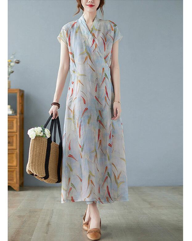 トップスも普段着も揃うチャイナ服専門店chaiです。こちらはチャイナドレス ワンピース 春夏 ゆったり 涼しげな風合い 半袖 zl361の商品ページです。涼しげな風合いのロングワンピースで、春夏の普段着にちょうどよいアイテムです。