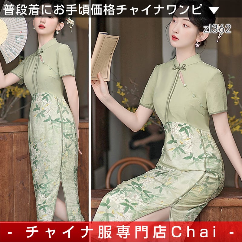 トップスも普段着も揃うチャイナ服専門店chaiです。こちらはチャイナドレス ワンピース 春夏 上品な風合い 半袖 zl362の商品ページです。上品な風合いのロングワンピースで、春夏の普段着にもちょうどよいアイテムです。