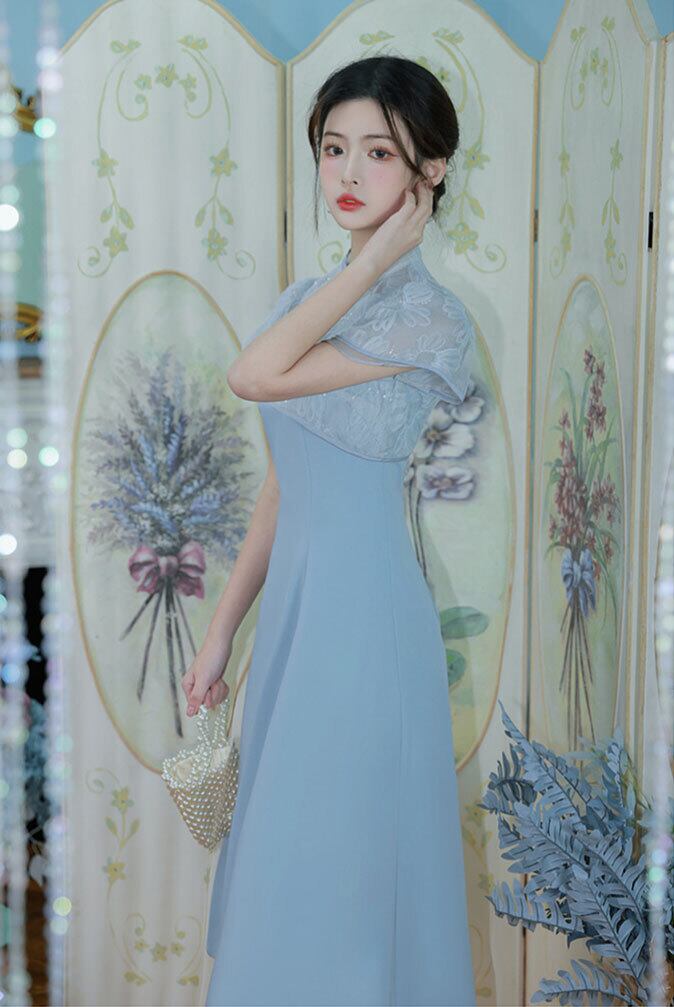 トップスも普段着も揃うチャイナ服専門店chaiです。こちらはチャイナドレス ワンピース 上品な風合い 半袖 ブルー 花柄 セパレートセット zl370の商品ページです。上品な風合いのロングワンピースで、春夏の普段着にもちょうどよいアイテムです。