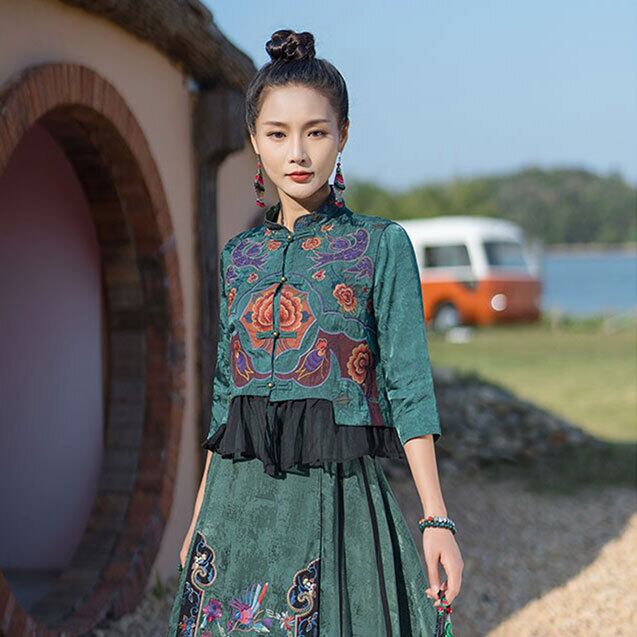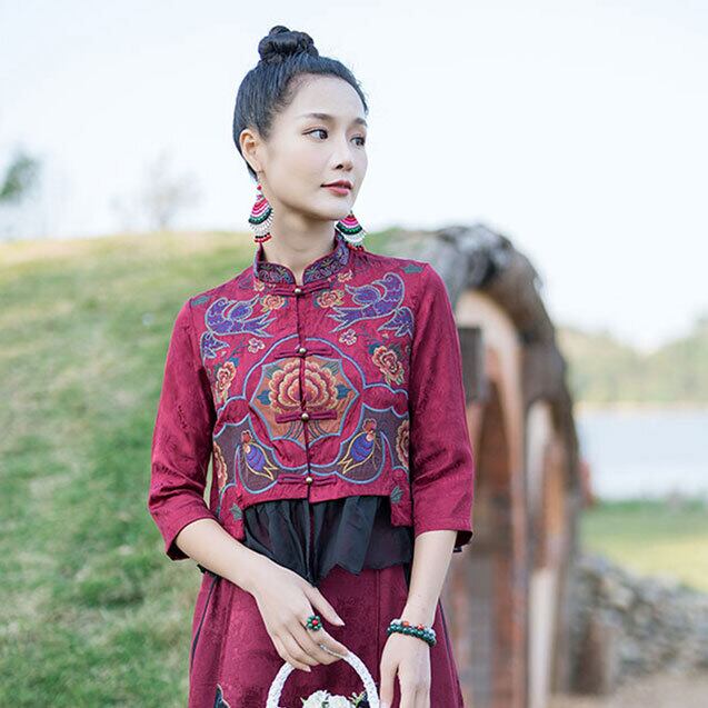 チャイナ服 トップス 春夏 凝った刺繍 七分袖 チャイナシャツツ zh435