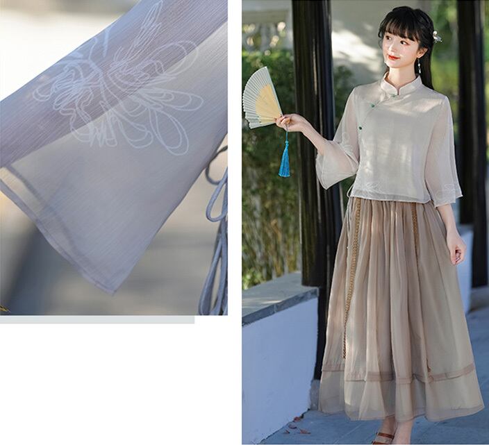 チャイナ服 トップス 普段着 春夏 薄手 涼しげな風合い ゆったり 透け感袖 漢服 zh438
