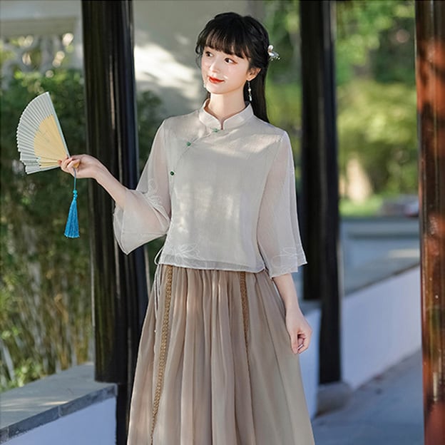 トップスも普段着も揃うチャイナ服専門店chaiです。こちらはチャイナ服 トップス 普段着 春夏 薄手 涼しげな風合い 透け感袖 漢服 zh438の商品ページです。涼しげな風合いのゆったりとしたチャイナトップスで、春夏の普段着チャイナコーデにぴったりのアイテムです。