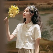 トップスも普段着も揃うチャイナ服専門店chaiです。こちらはチャイナ服 トップス 普段着 モダンチャイナ フェミニンな風合い 可愛いチャイナ服 zh440の商品ページです。フェミニンな風合いの可愛いモダンチャイナトップスで、春夏の普段着チャイナコーデにぴったりのアイテムです。