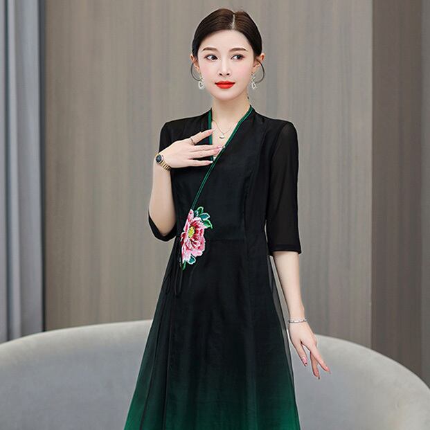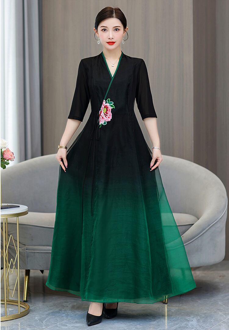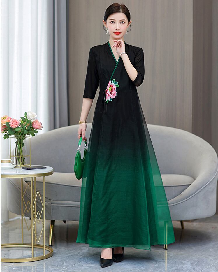 チャイナ服 ワンピース グラデーション 五分袖 Vネック 漢服 zl375