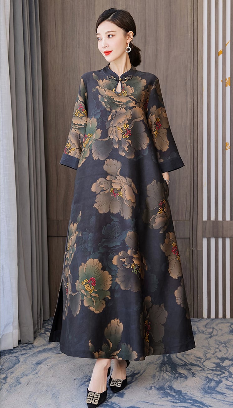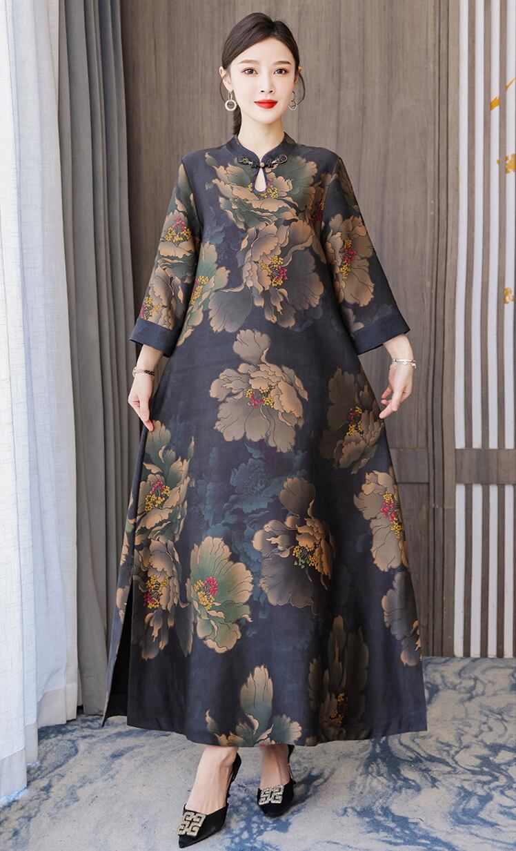 チャイナ服 ワンピース 花柄 素朴で上品な風合い ゆったり 漢服 zl378