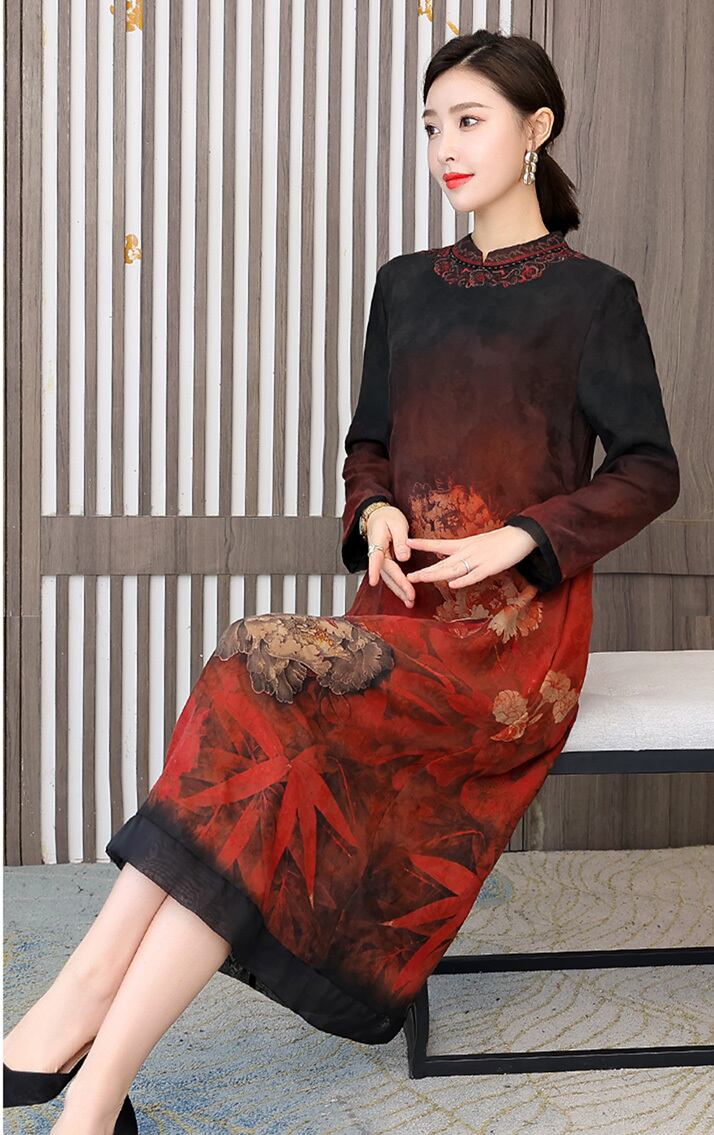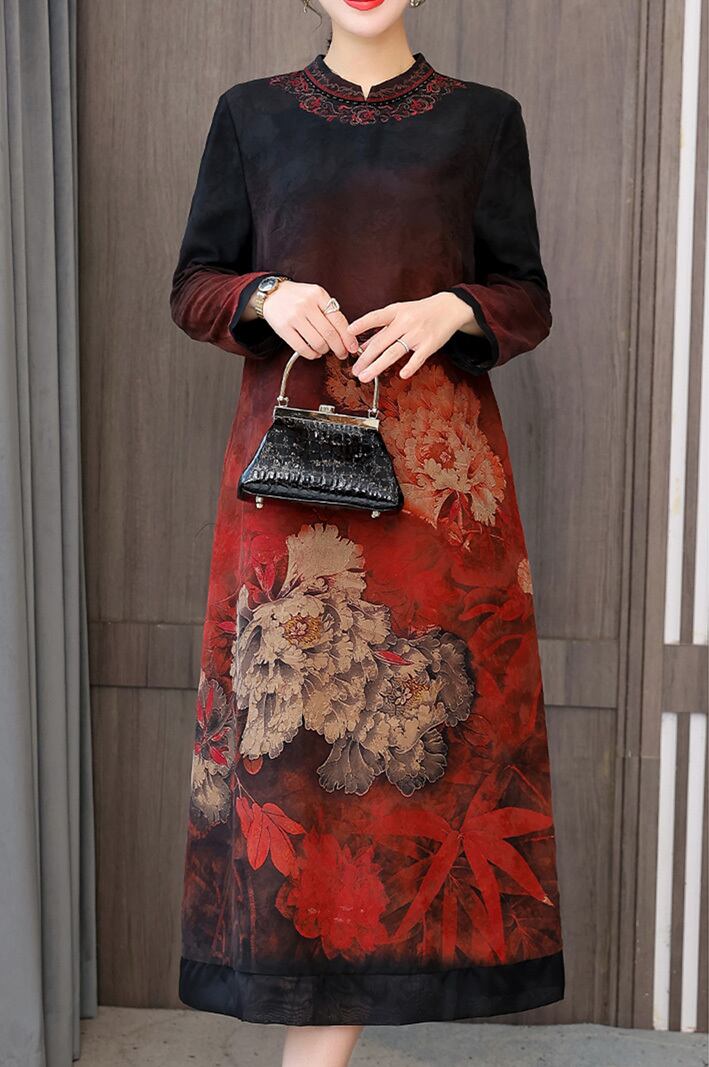 チャイナ服 ワンピース 花柄 素朴で上品な風合い ゆったり zl381