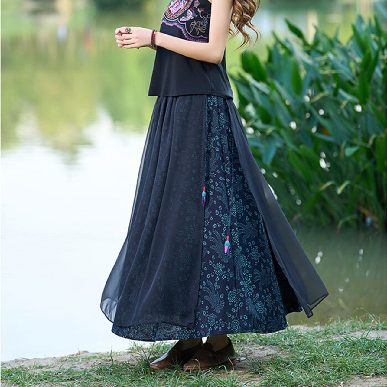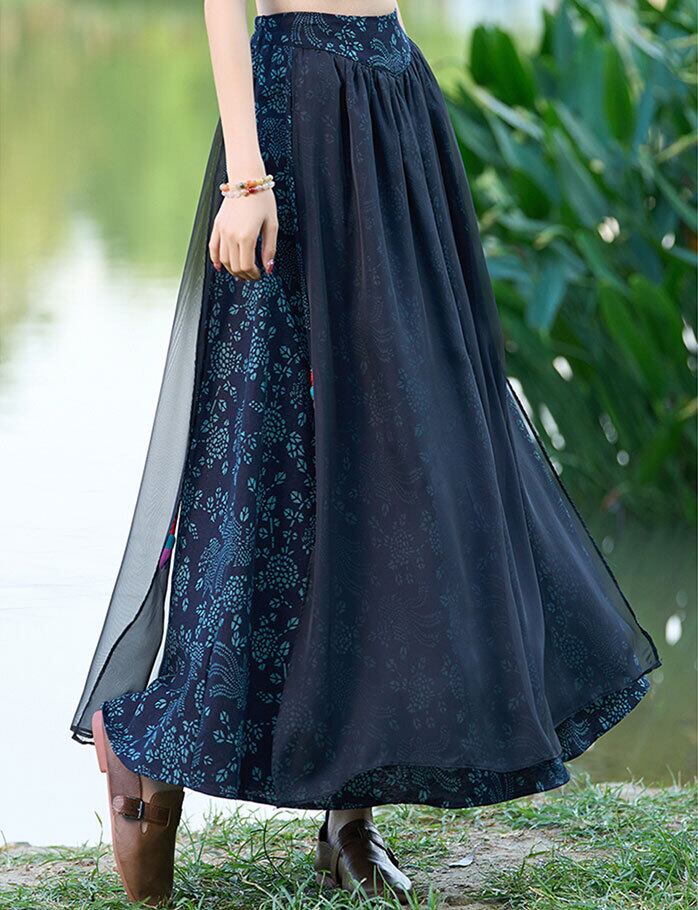 チャイナ服 スカート 民族風柄スカート 素朴な風合い Aライン zq109