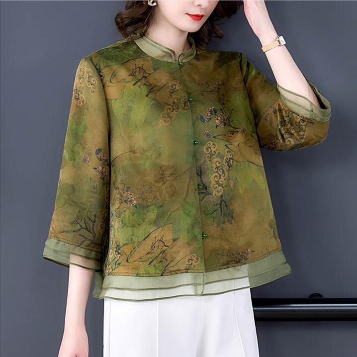 チャイナ服 トップス ゆったり 七分袖 薄手 上品で落ち着いた風合い zt464
