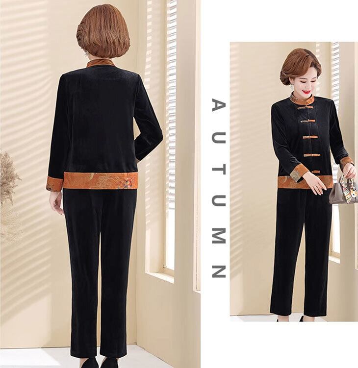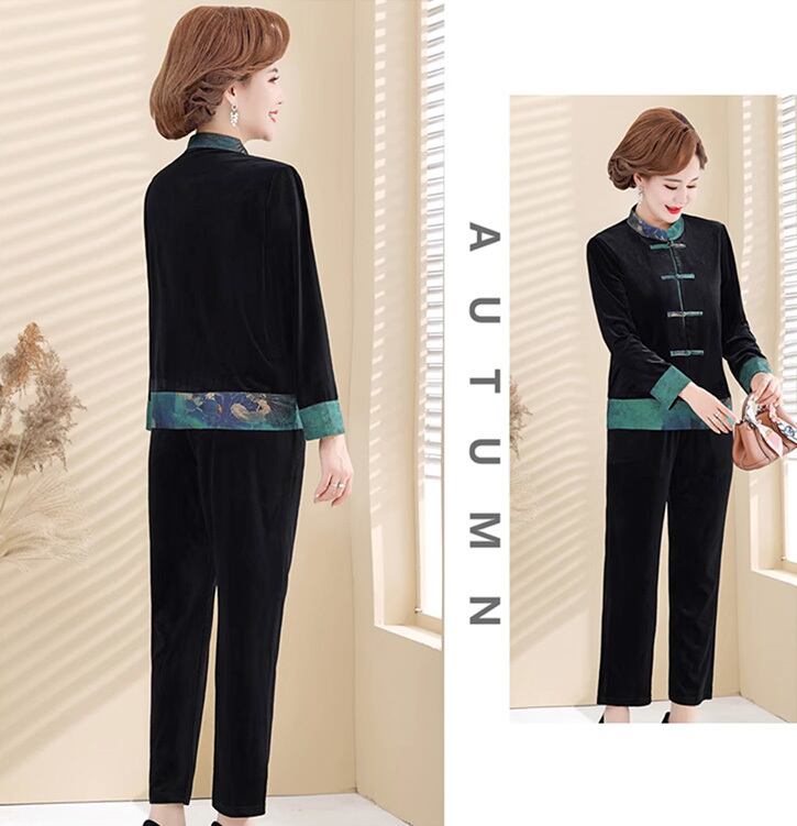 チャイナ服 上下セット トップス ストレートパンツ セットアップ 落ち着いた風合い zw57