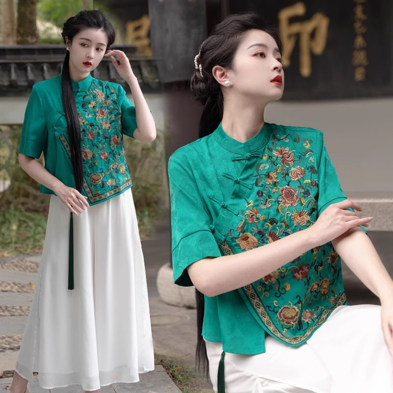 チャイナ服 トップス 春夏 凝った刺繍 上品な風合い 装飾トップス 五分袖 漢服 zh459