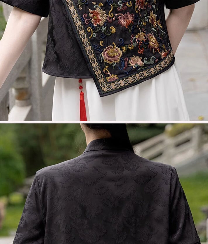 トップスも普段着も揃うチャイナ服専門店chaiです。こちらはチャイナ服 トップス 春夏 凝った刺繍 上品な風合い 装飾トップス 五分袖 漢服 zh459の商品ページです。刺繍の凝ったチャイナトップスで、普段着にも衣装にもちょうどいいアイテムです。