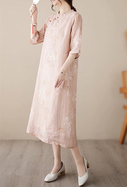 チャイナ服 ワンピース 素朴な風合い ゆったりシルエット 普段着 zl390
