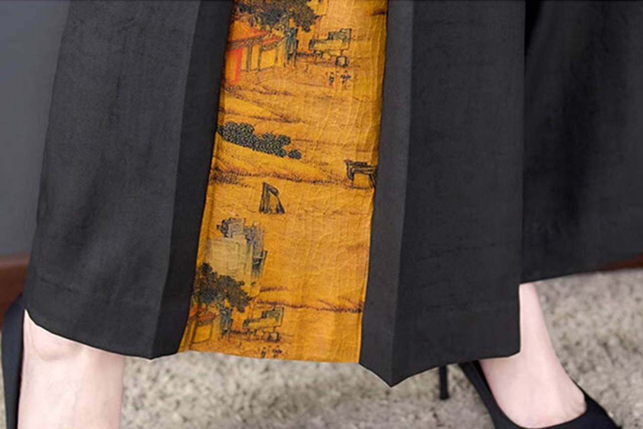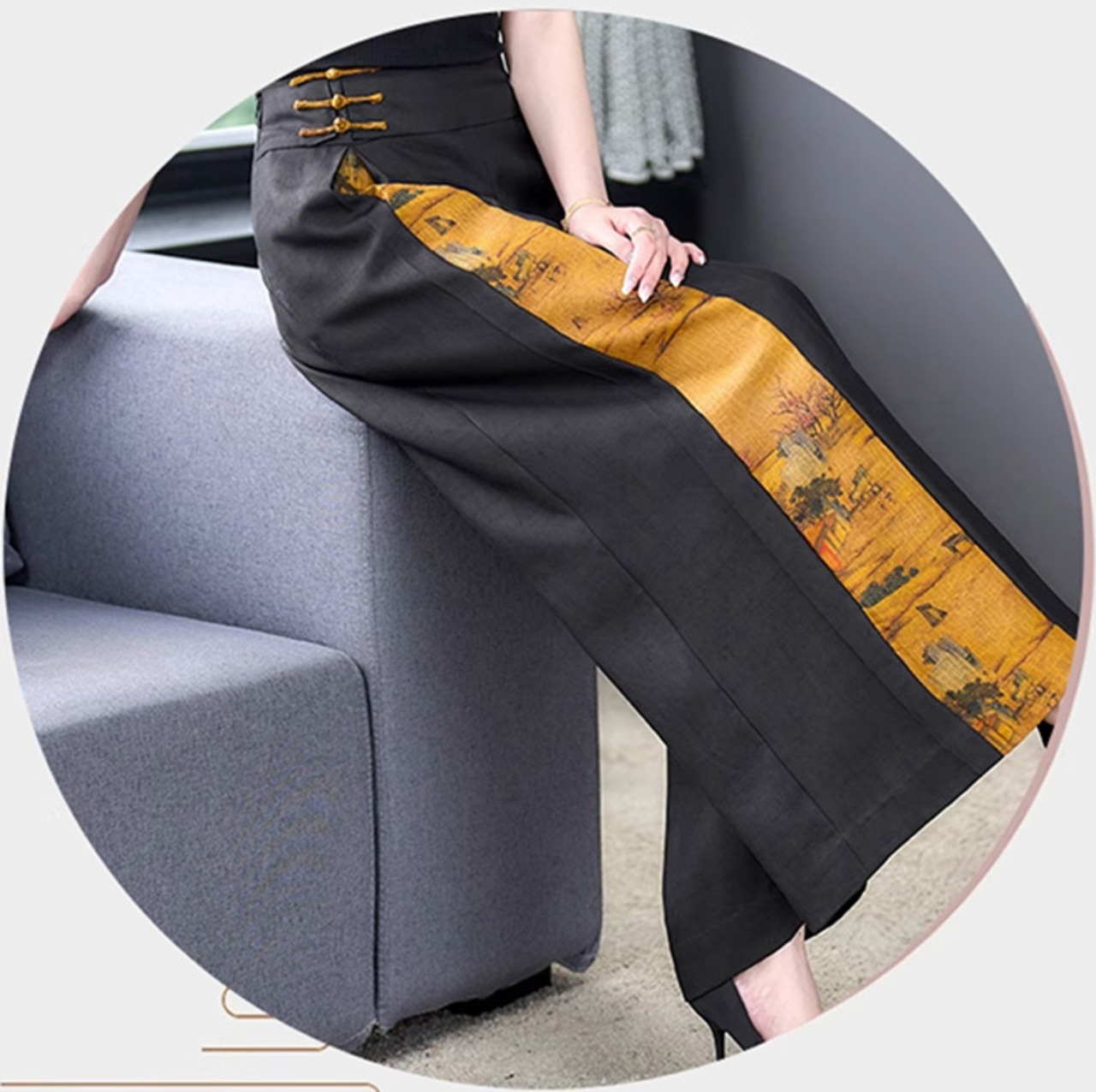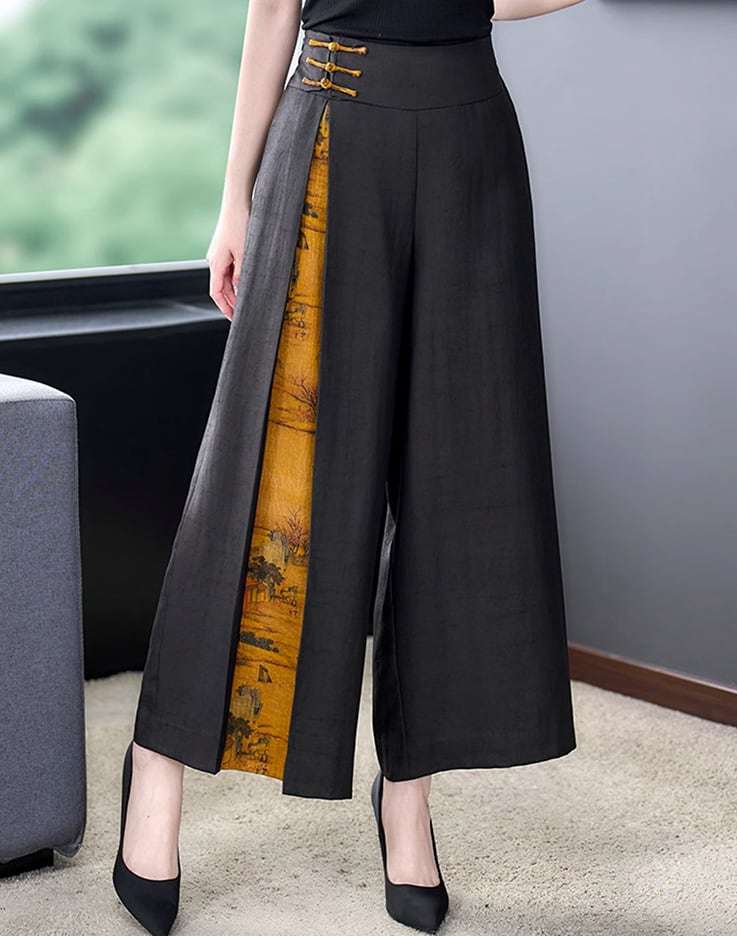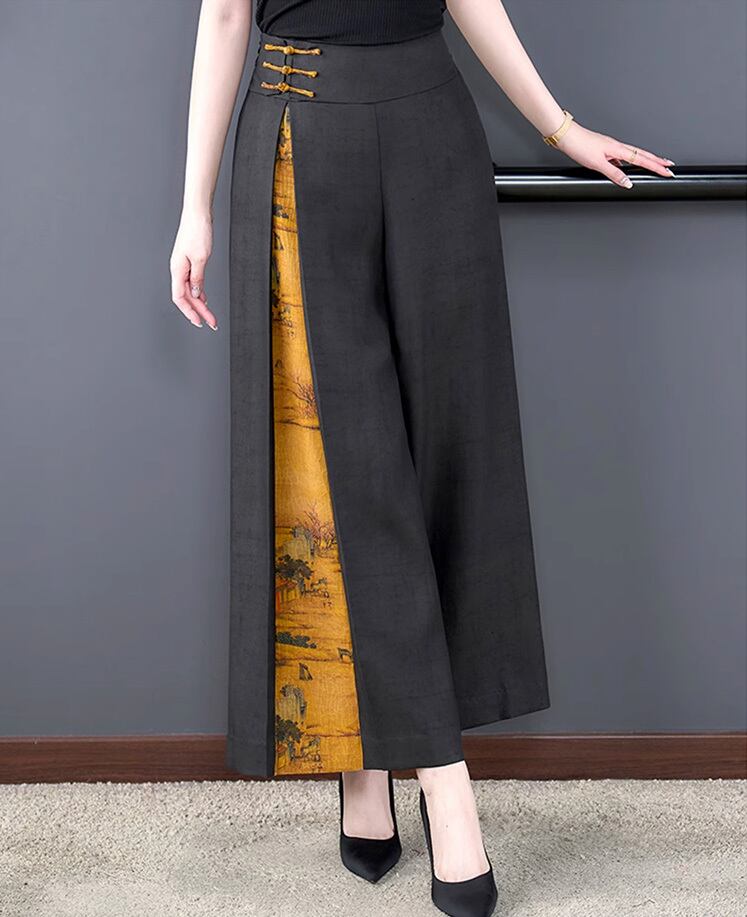 チャイナ服 ワイドパンツ ゆったり 切り替え柄 上品な風合い zb205