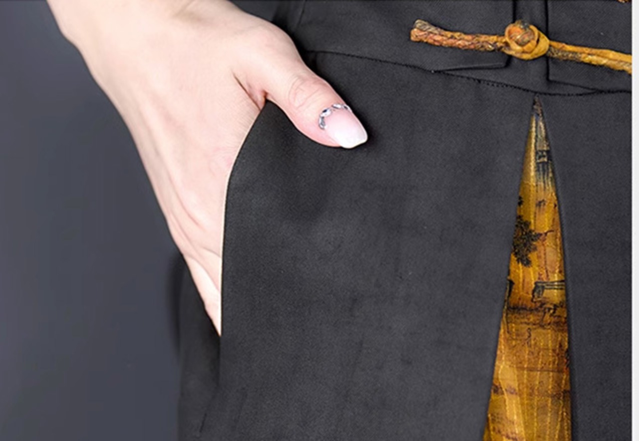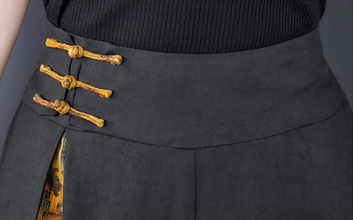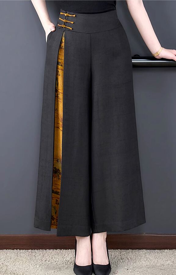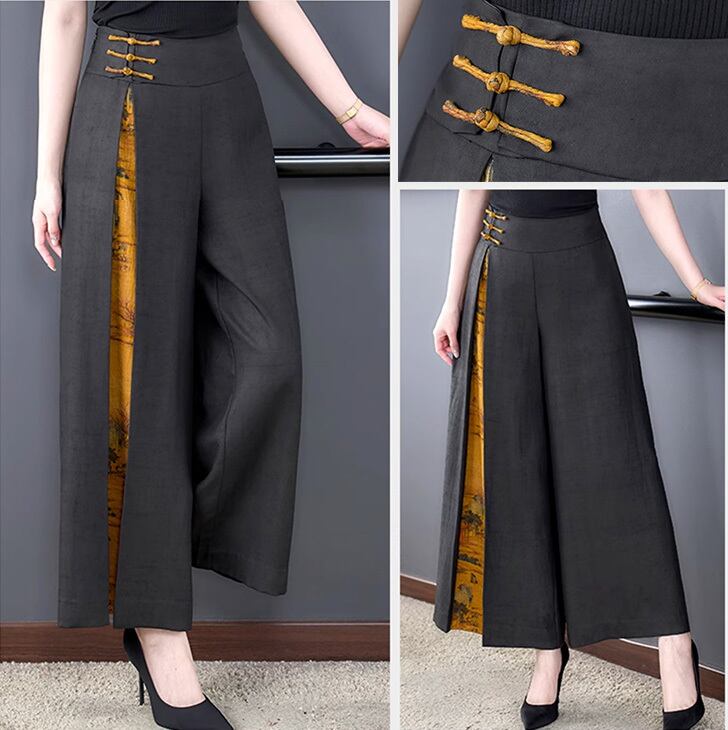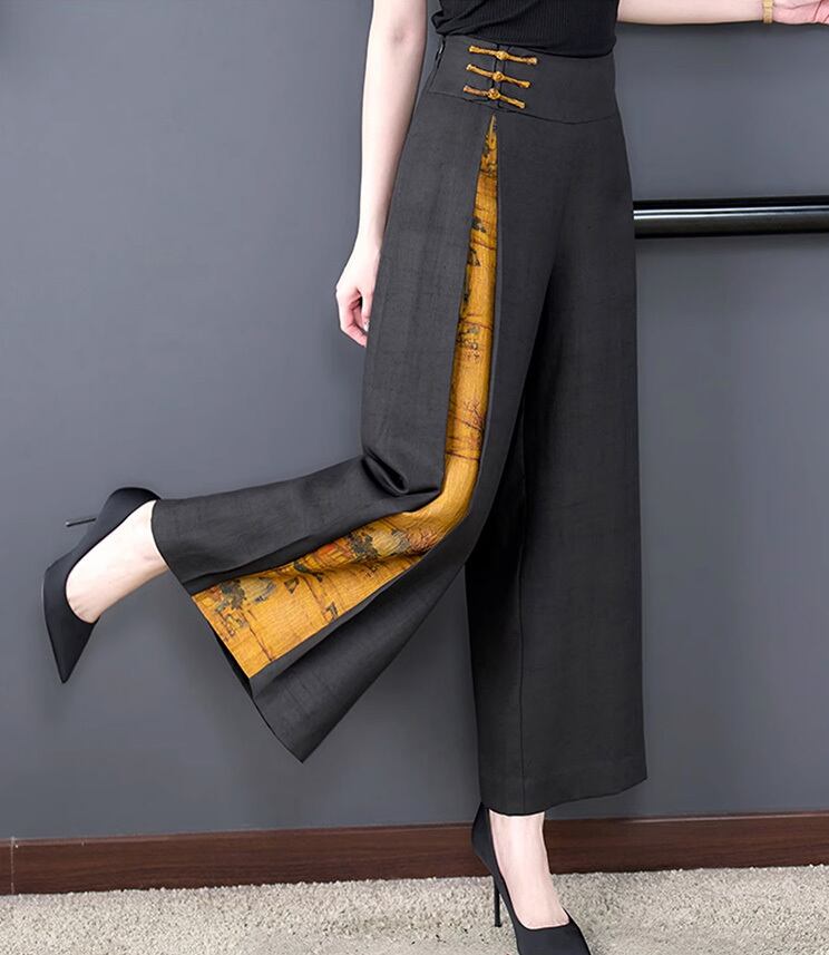 チャイナ服 ワイドパンツ ゆったり 切り替え柄 上品な風合い zb205