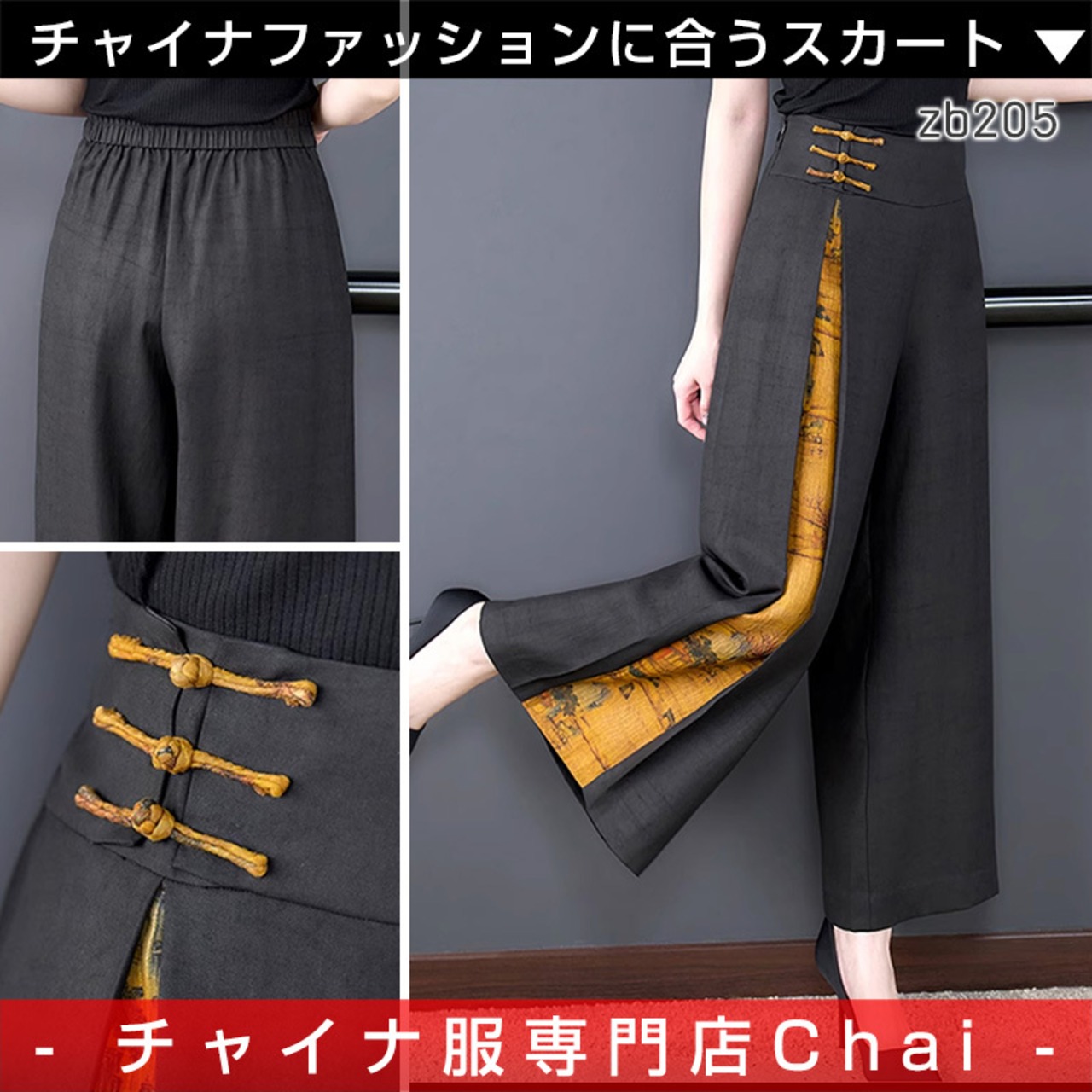 トップスも普段着も揃うチャイナ服専門店chaiです。こちらはチャイナ服 ワイドパンツ ゆったり 切り替え柄 上品な風合い zb205の商品ページです。上品な風合いのワイドパンツで、チャイナトップスと合わせるのにぴったりのアイテムです。