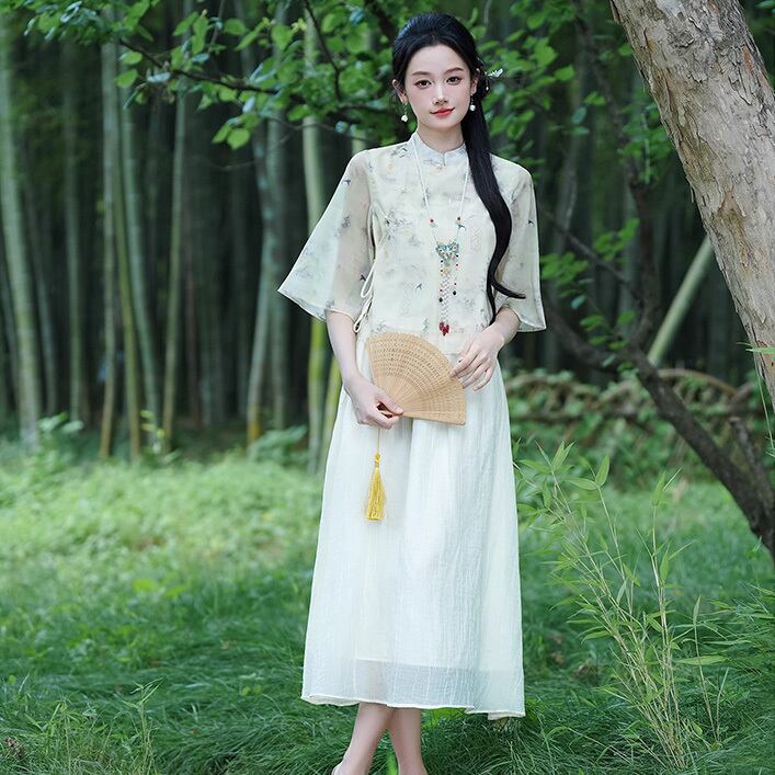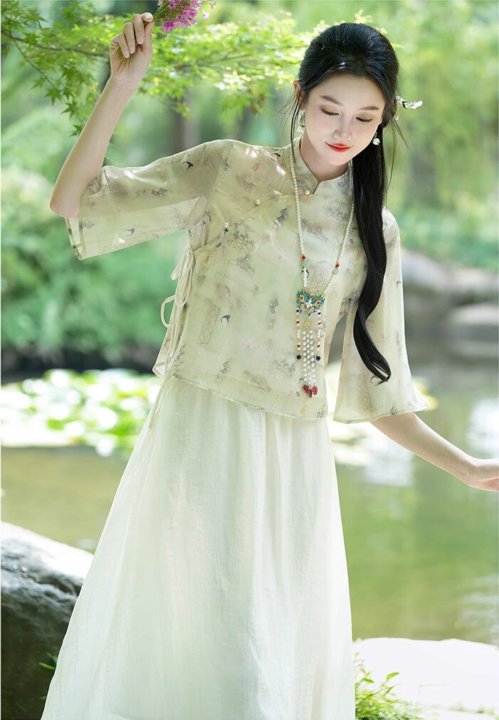 チャイナ服 トップス 夏 薄手 涼しげな風合い 唐服 七分袖 zh468