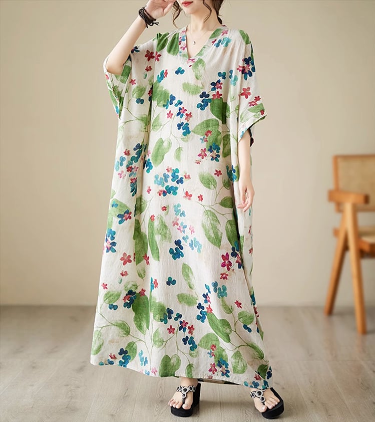 トップスも普段着も揃うチャイナ服専門店chaiです。こちらはチャイナ服 ワンピース 春夏 オーバーサイズ ゆったりシルエット 花柄 すっぽりワンピ zl396の商品ページです。すっぽりと着るゆったりワンピで、春夏の普段着や衣装にちょうどよいアイテムです。