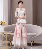 チャイナ服 上下セット ワンピース ワイドパンツ お得なセット ピンク 可愛い 二胡衣装 zw60