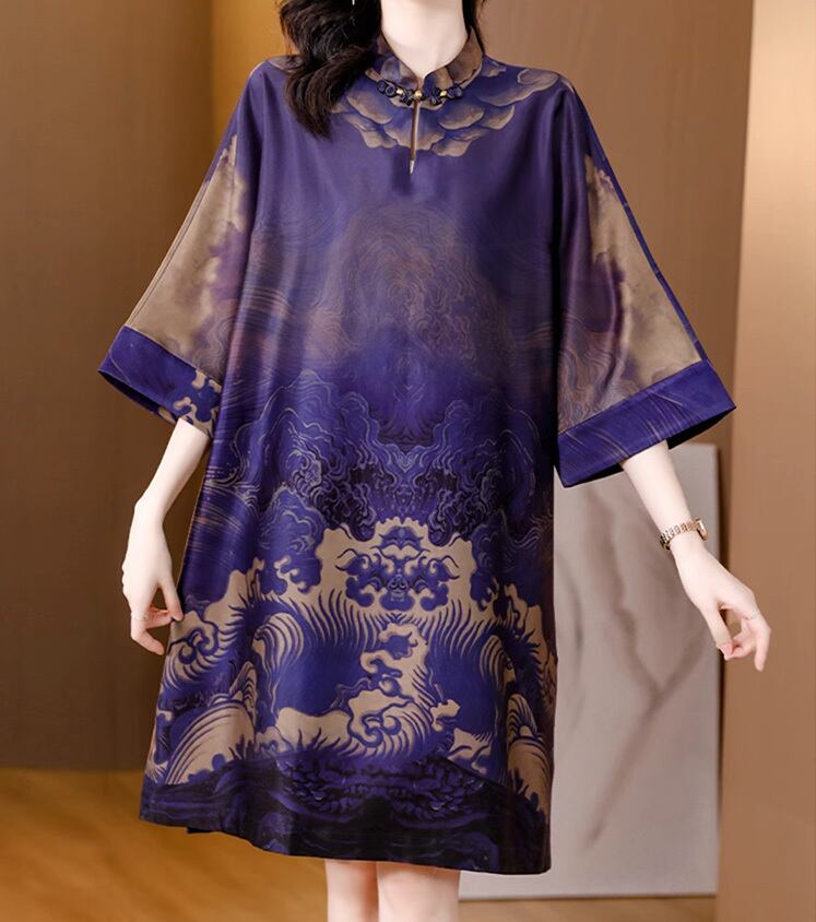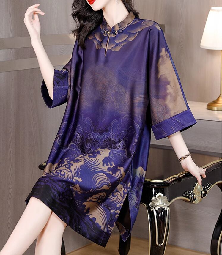 トップスも普段着も揃うチャイナ服専門店chaiです。こちらはチャイナ服 ワンピース ゆったりシルエット ひざ丈 五分袖 zs253の商品ページです。体型カバーのゆったりシルエットで、普段着にも中国舞踊などのステージ衣装にもちょうどよいアイテムです。