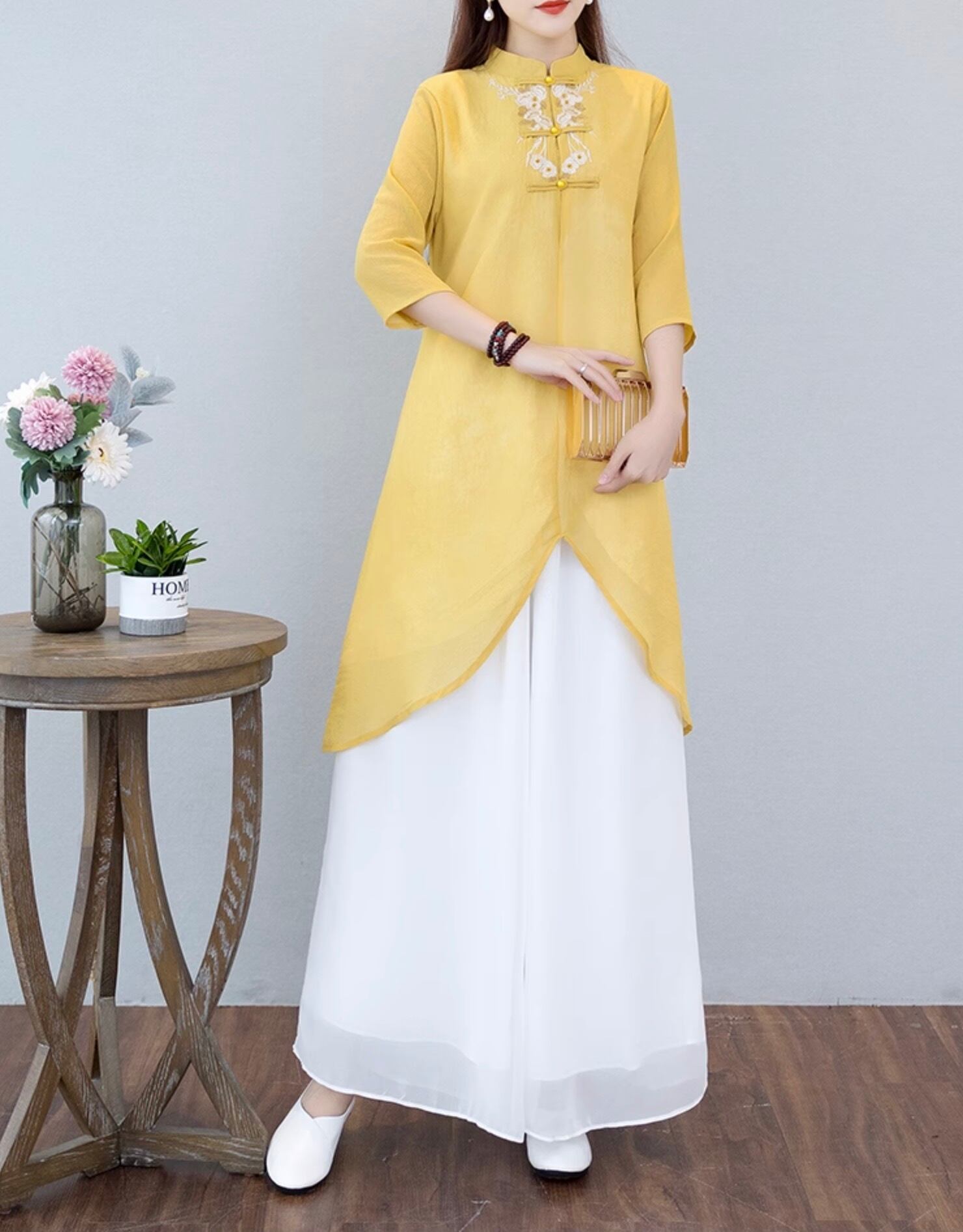 チャイナ服 ワイドパンツ ゆったり シンプル zb206