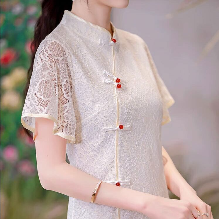 チャイナ服 ワンピース ショート丈 モダン 半袖レース チャイナドレス zs255