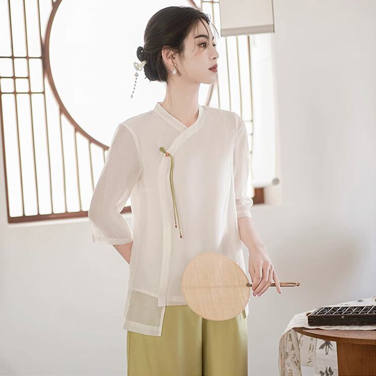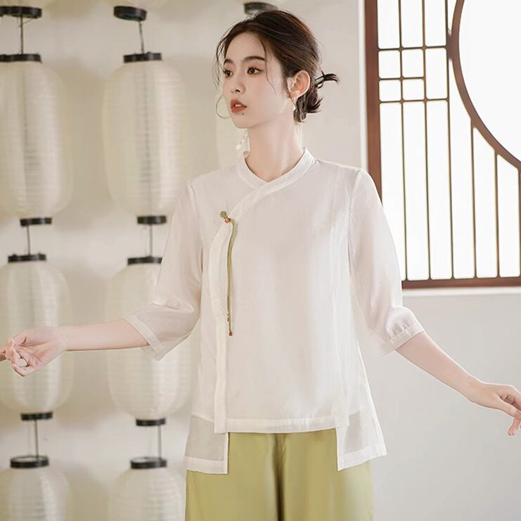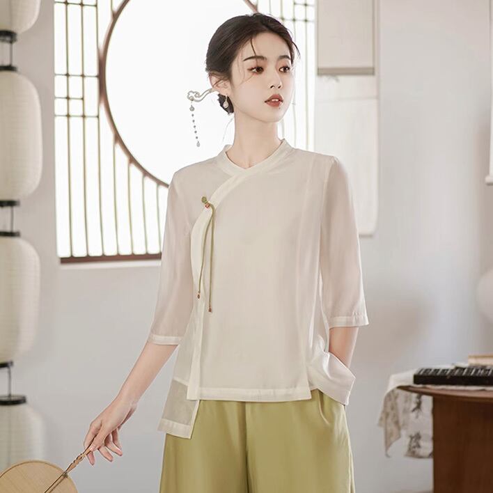 チャイナ服 トップス シンプル 上品な風合い 七分袖 チャイナシャツ zh487