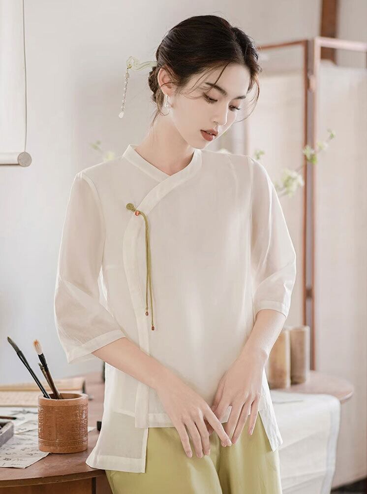 トップスも普段着も揃うチャイナ服専門店chaiです。こちらはチャイナ服 トップス シンプル 上品な風合い 七分袖 チャイナシャツ zh487の商品ページです。上品な風合いのチャイナトップスで、普段着にも衣装にもちょうどいいアイテムです。