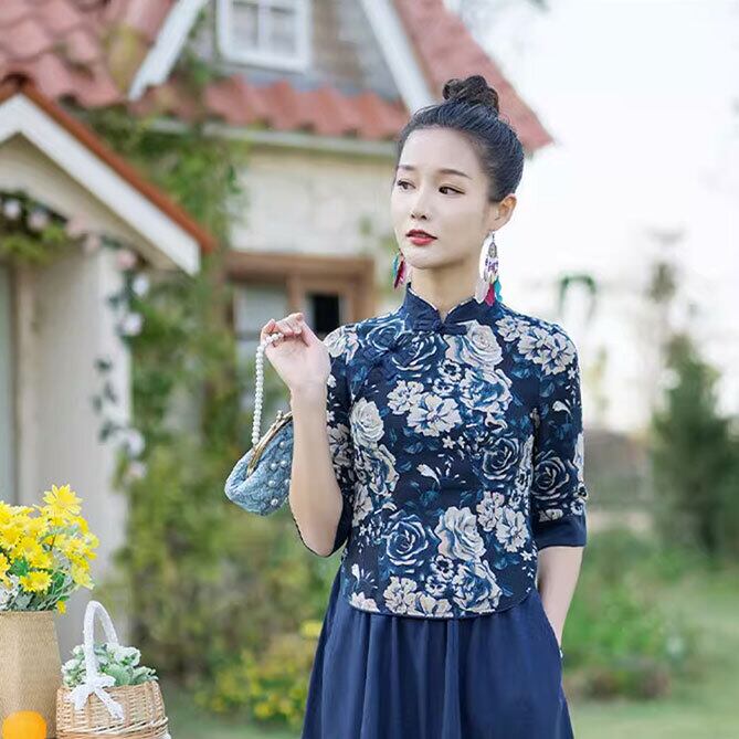 チャイナ服 上下セット トップス スカート お得なセット 素朴 落ち着いた風合い zw63