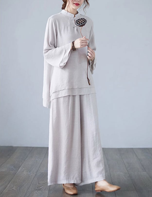 トップスも普段着も揃うチャイナ服専門店chaiです。こちらはチャイナ服 上下セット トップス ワイドパンツ セットアップ ゆったりシルエット シンプル zw71の商品ページです。とてもお買い得なトップスとワイドパンツの上下セットで、シンプルな風合いが普段着にちょうどよいアイテムです。