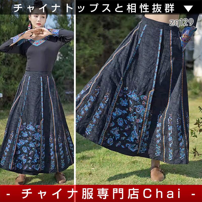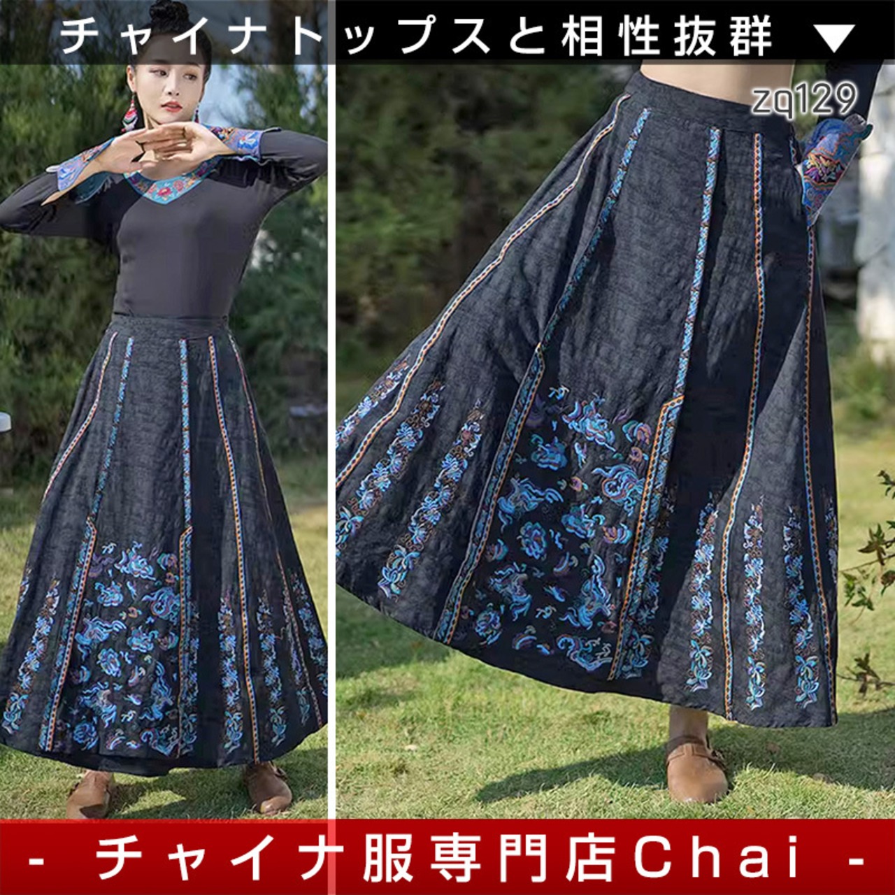 トップスも普段着も揃うチャイナ服専門店chaiです。こちらはチャイナ服 スカート 本格 凝った刺繍 民族風 装飾スカート 二胡衣装 zq129の商品ページです。刺繍の凝ったスカートで、チャイナトップスと合わせるのにぴったりのアイテムです。
