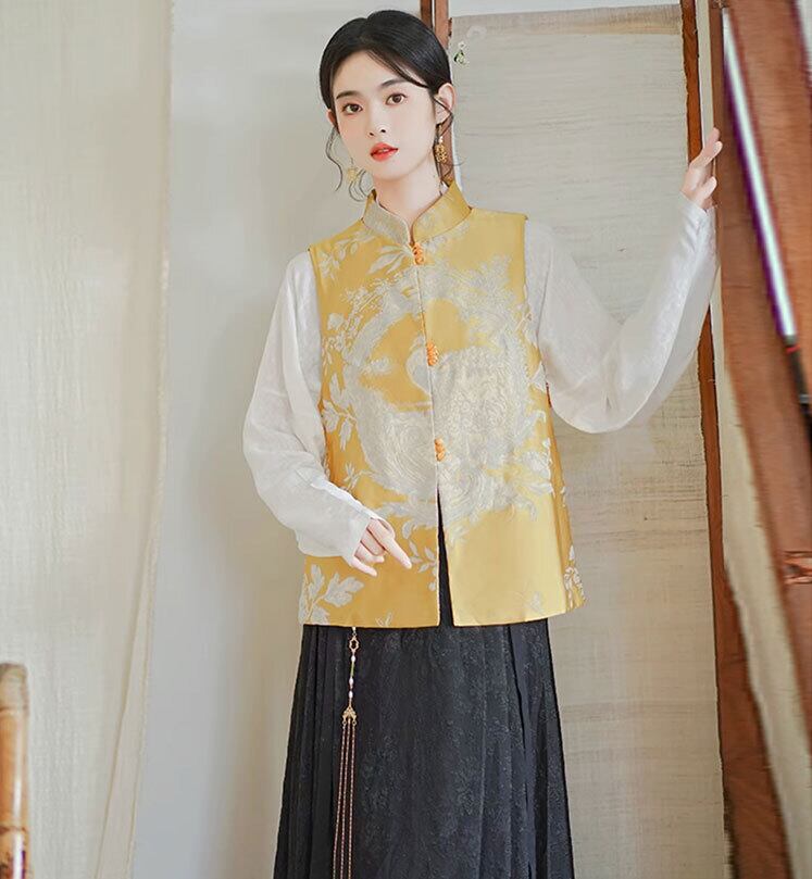 チャイナ服 トップス チャイナベスト 重ね着にちょうどいい 高級感 つやあり上品 zv67
