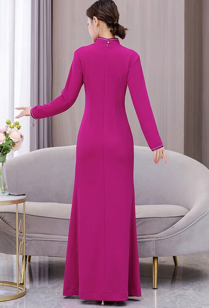チャイナドレス ロングワンピ 上品な風合い 上品な風合い 長袖 シンプル ステージ衣装 zl406