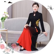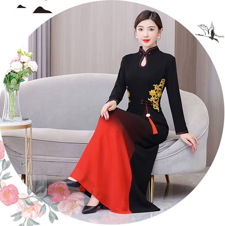 チャイナドレス ロングワンピ シンプル ステージ衣装 上品な風合い 長袖 zl408